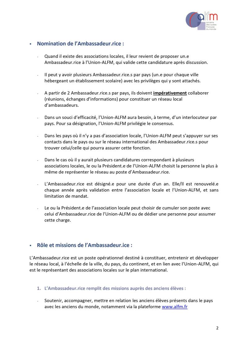 monde, l’Union-ALFM, en signant la Charte de l’Ambassadeur.rice. Celle-ci confie aux